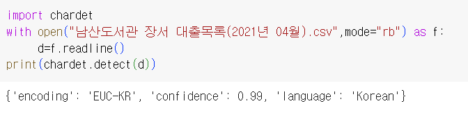 - chardet 패키지의 chardet.detect() 함수를 사용
