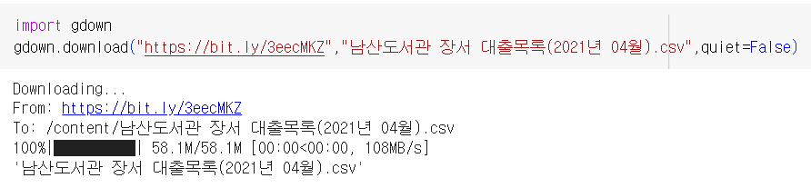 1. gdown 패키지 이용(구글드라이브->코랩)