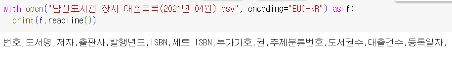 - with문으로 파일을 열고, open()함수로 파일을 읽고, readline()메서드로 한 줄씩 읽는다.