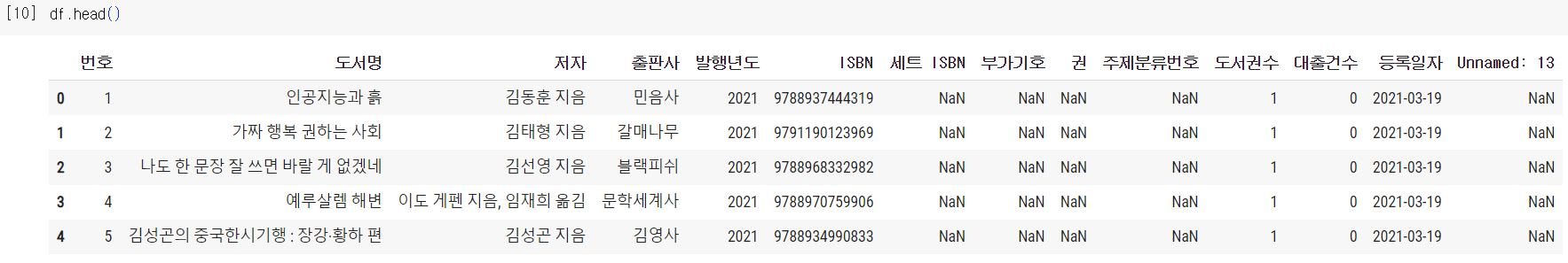 - head() 메서드를 사용하면 데이터 프레이의 처음 다섯 개 행을 확인할 수 있음